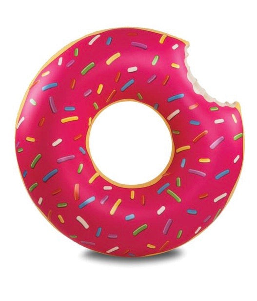 It looks good enough to eat, and in fact, someone took a bite out of our best selling Giant Frosted Strawberry Donut Float. At 4 feet wide, it’s comfy enough for an entire day at the pool or beach—and hysterically fun. Approximate inflated dimensions 48 x 48 x 14 inches. Holds up to 200 lbs.